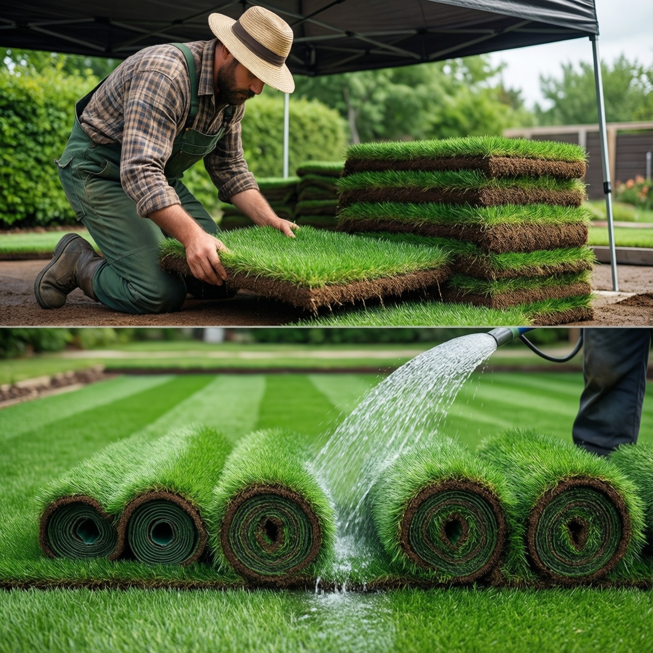 - Перекорм азотом сразу после укладки: трава "гонит лист" в ущерб укоренению и хуже переносит стресс. Подкормку давайте только после начала прирастания и первой/второй стрижки; при сомнениях ограничьтесь тонким слоем просеянного компоста как топдрессингом.